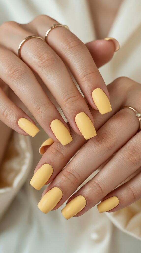 Matte finishes add sophistication to the sunny hue. Matte butter yellow nails look chic and modern while keeping a soft touch.