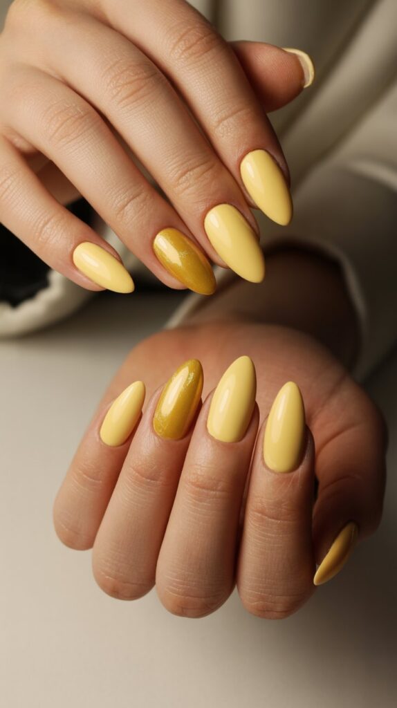 - Party & Evening Looks: Combine glossy or glittery butter yellow nails with metallic accessories or darker shades of clothing for a bold, elegant statement.
