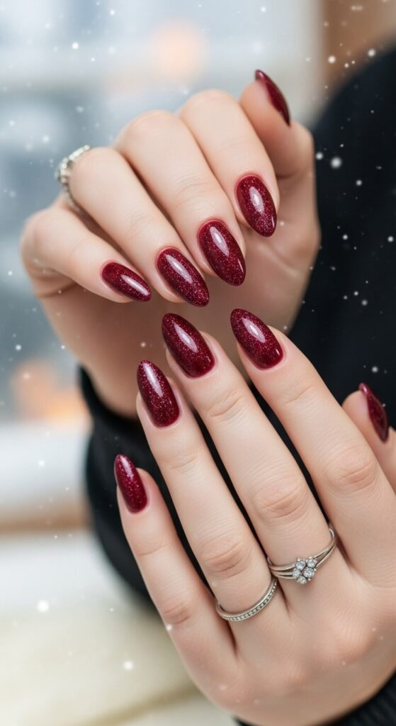 Think of a classic red nail, but with dimension. A deep crimson base is packed with tiny red and burgundy glitter flakes. It’s like your nails are a glass of fine, sparkling wine.