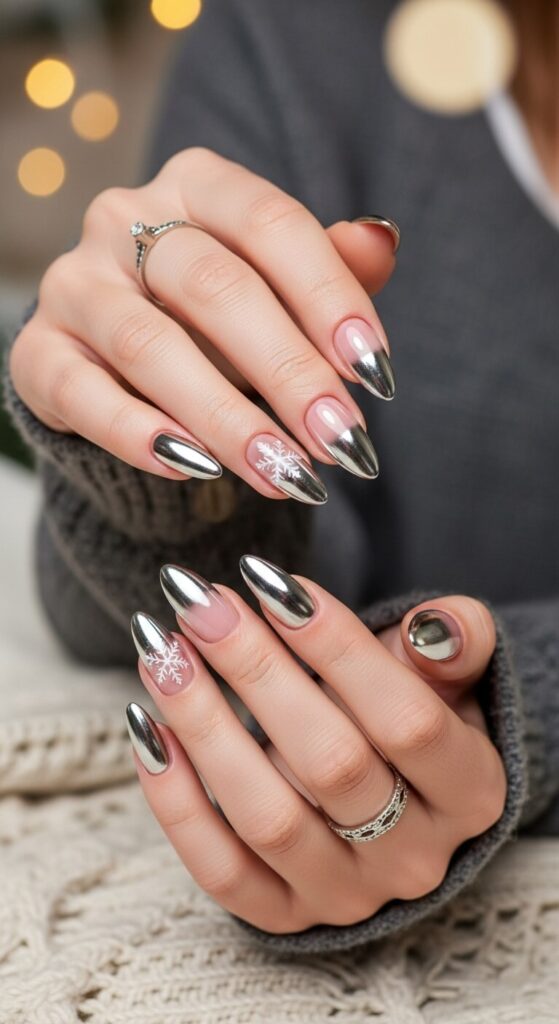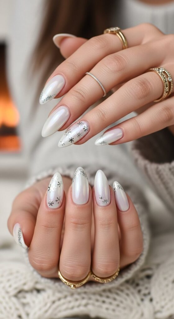 The French manicure is back, but she’s been to a ski resort. Instead of a stark white tip, opt for an off-white, almost creamy tip against a natural nude base. It’s soft, elegant, and winter-appropriate.