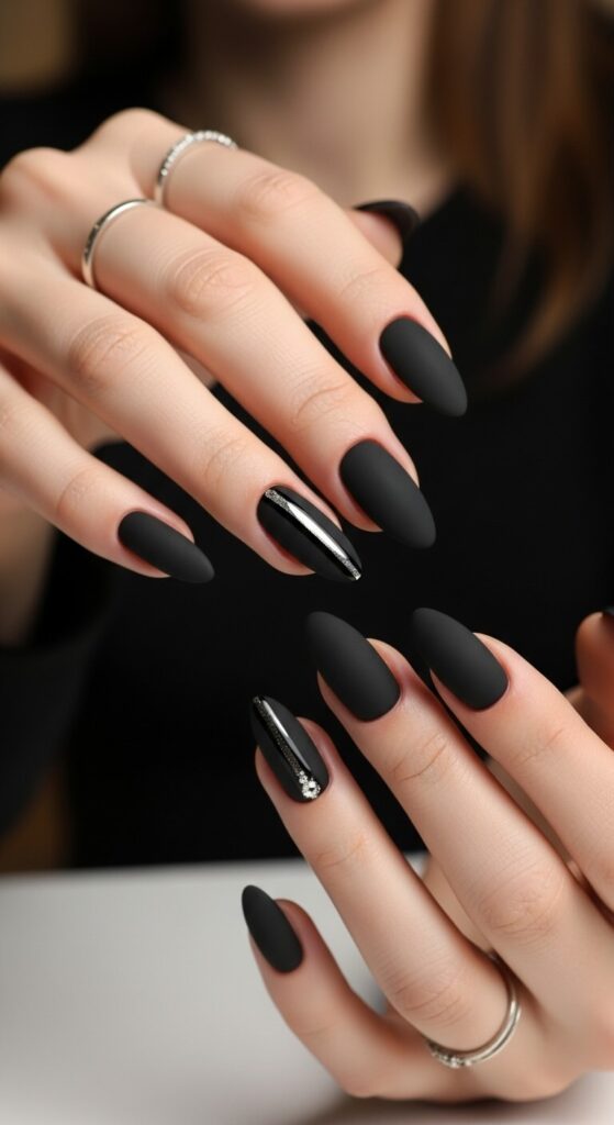 Matte black is already the coolest girl in the room. But adding just one glossy accent nail? Chef’s kiss. It’s edgy, modern, and so simple.