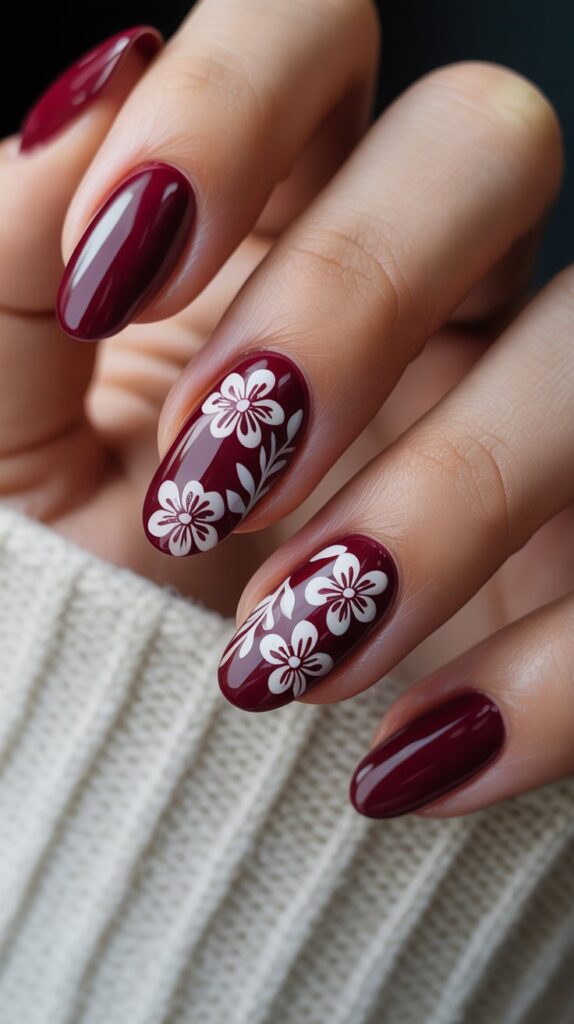 4. Burgundy Base with White Florals
