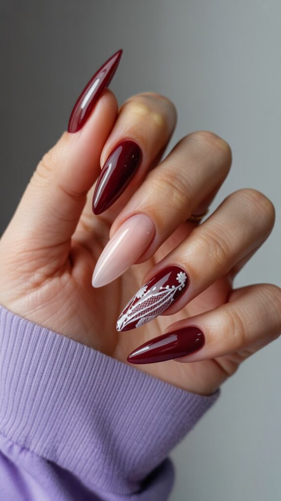Classy & Bold: 25 Burgundy and White Nail Art Ideas to Steal the Spotlight