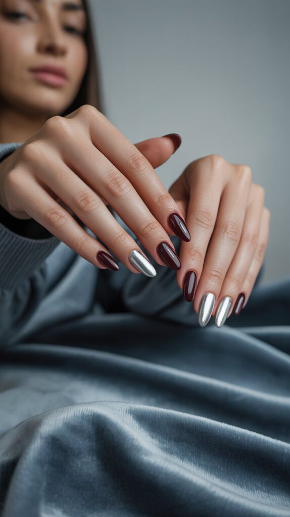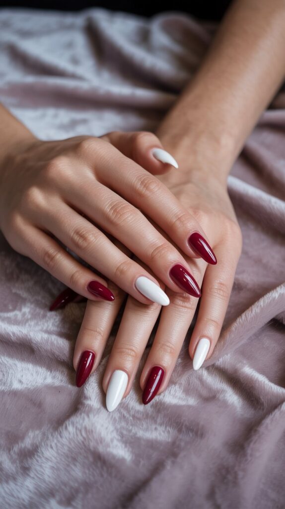 Pro Tip: For extra drama, try a matte burgundy base with glossy white tips. Fancy, right?