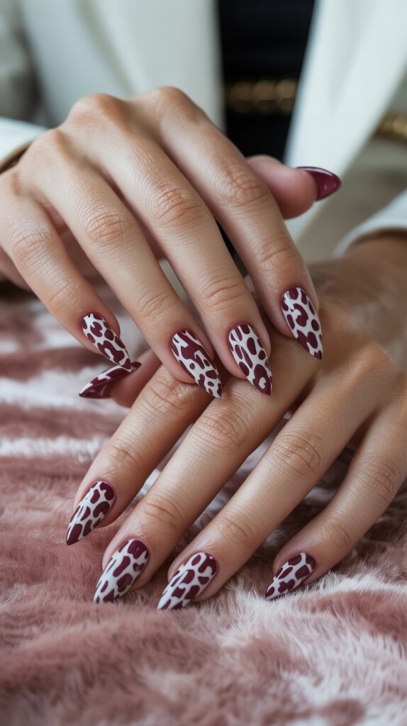 10. Burgundy & White Animal Print