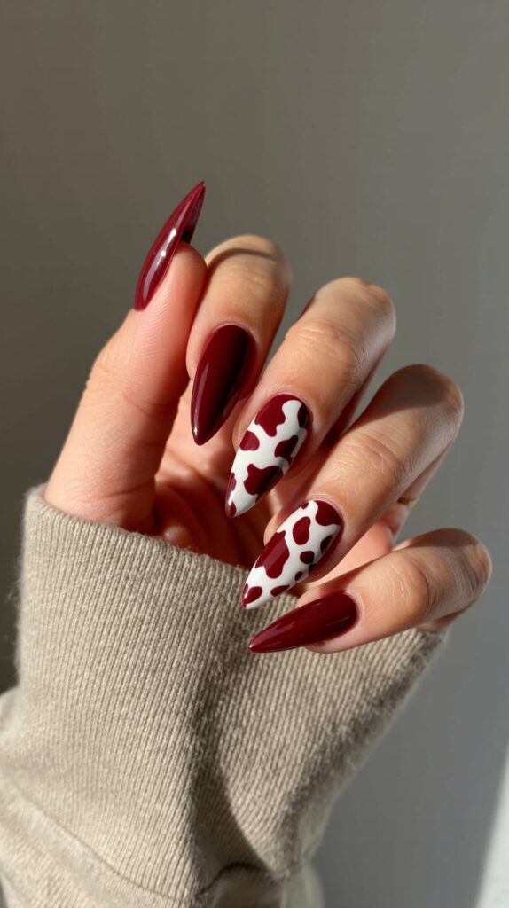 23. Burgundy & White Cow Print