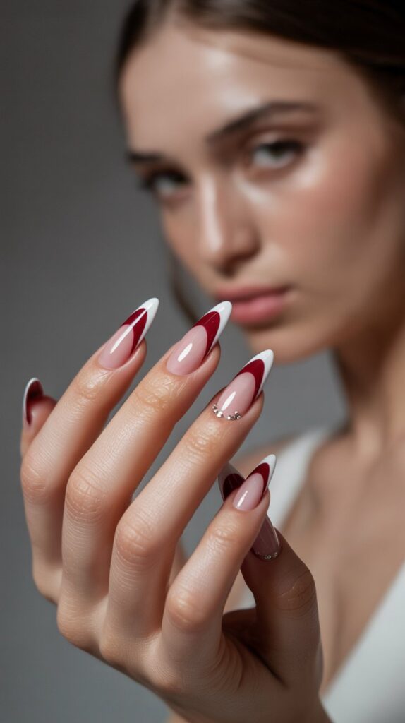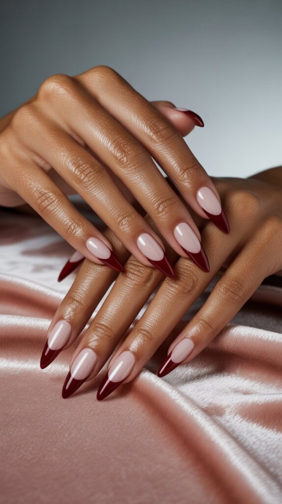 1. Classic French Tips with a Burgundy Twist