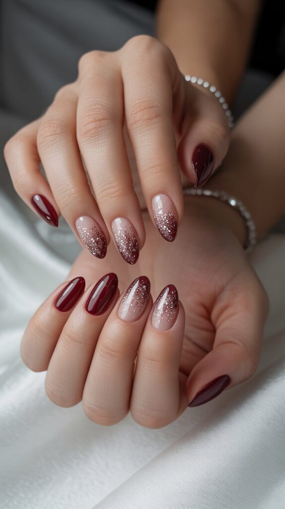 19. Burgundy & White Glitter Ombré