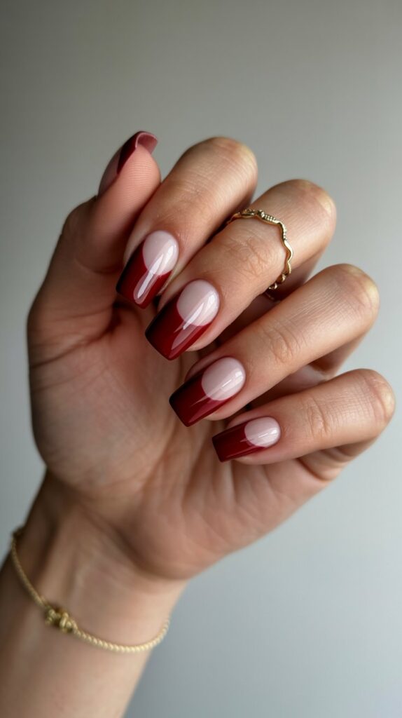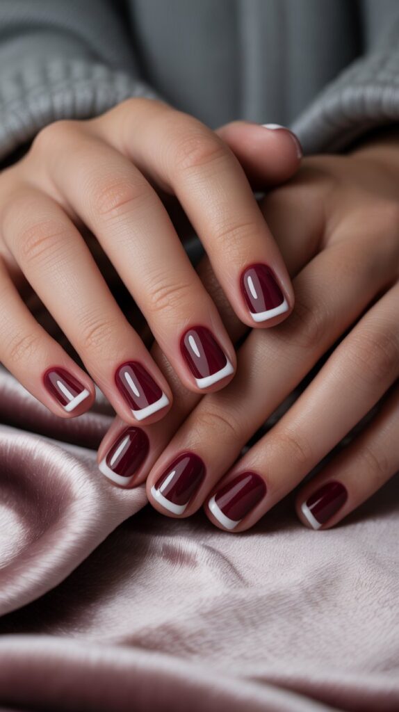 Flip the script—white base, burgundy tips. It’s French mani’s cooler cousin.