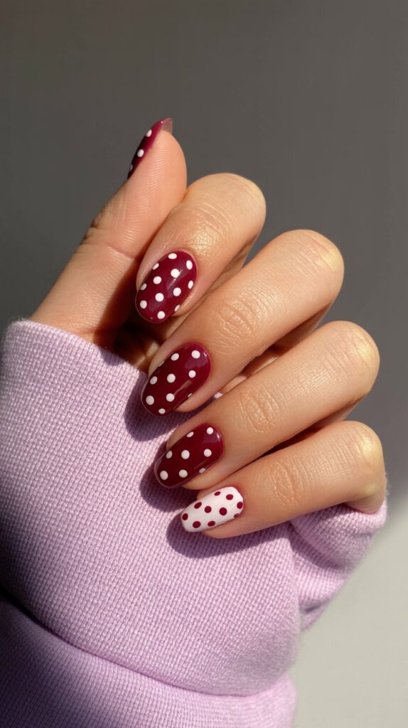 - Reverse it—burgundy dots on white for a bolder look.