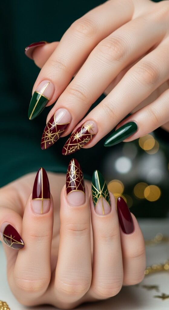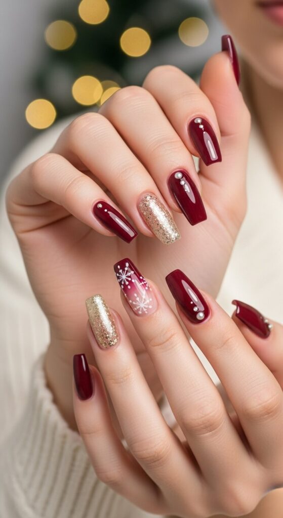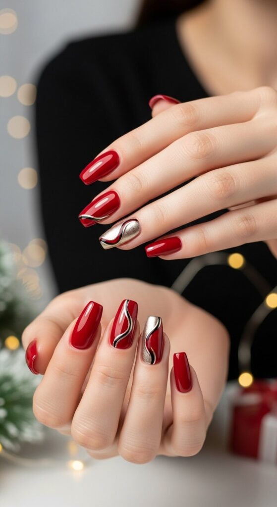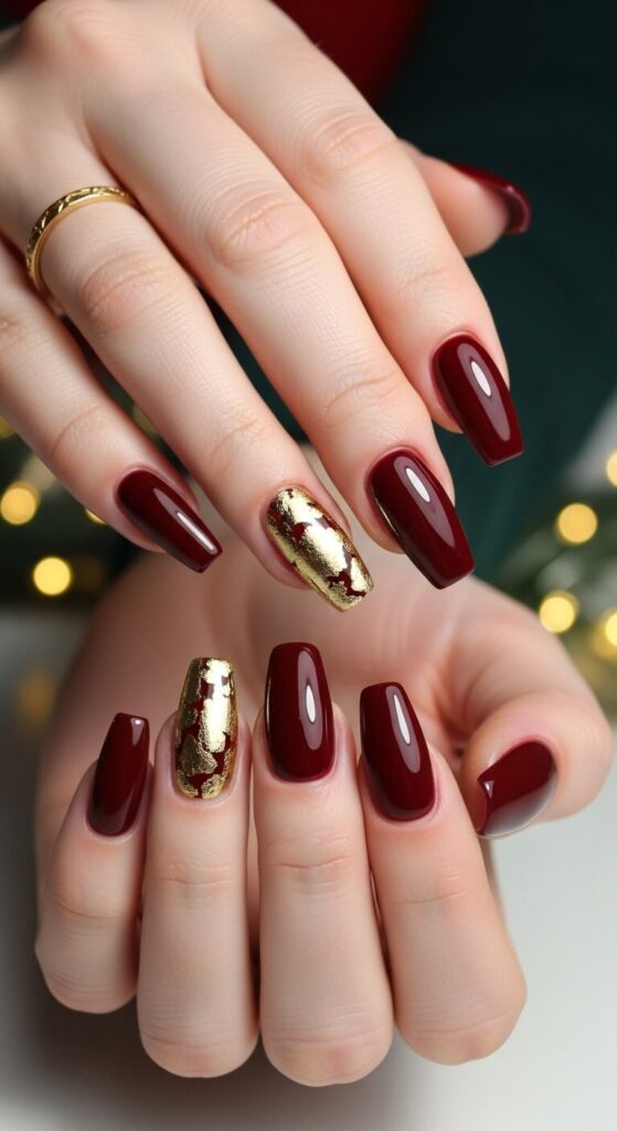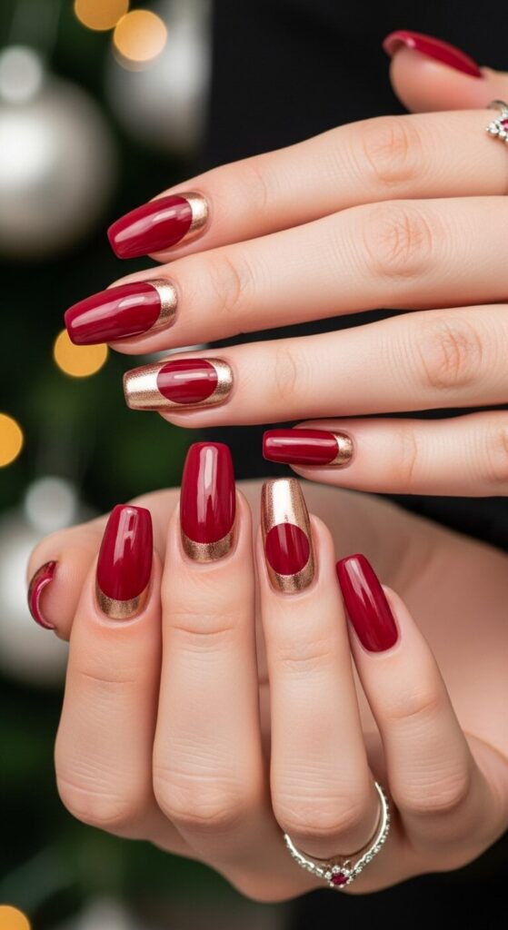 From the deep drama of wine-stained nails to the minimalist chic of gold lines, these Classy Christmas Nail Ideas truly offer something for every style.