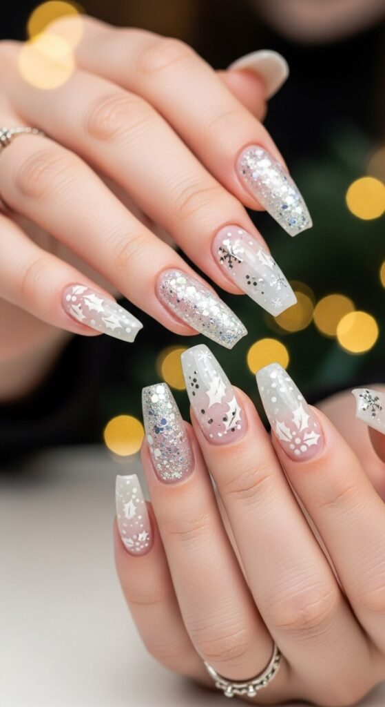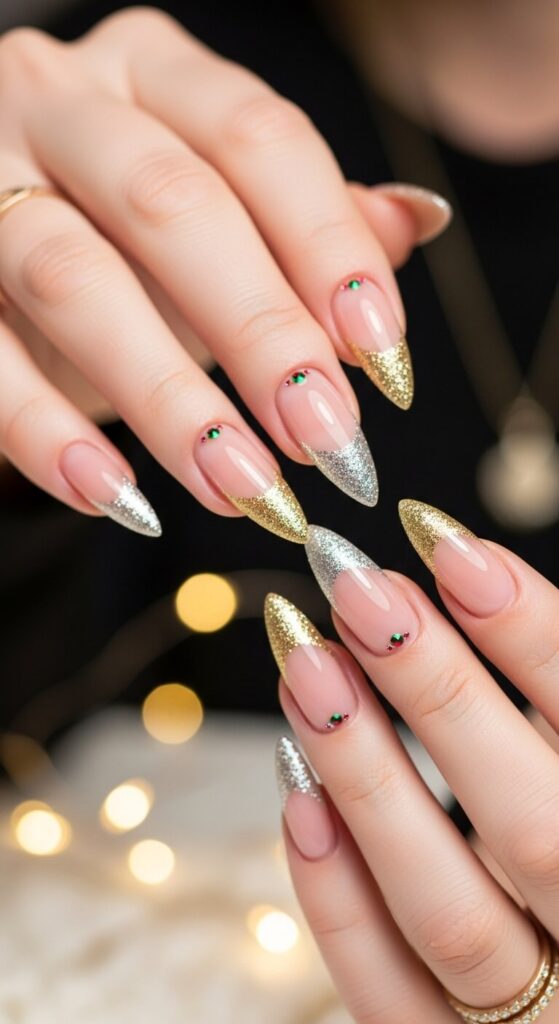 The French manicure got a PhD and graduated with honors. This isn’t your aunt’s 90s French tip; it’s a modern, sparkly masterpiece. Itโs clean, chic, and has a subtle festive touch.