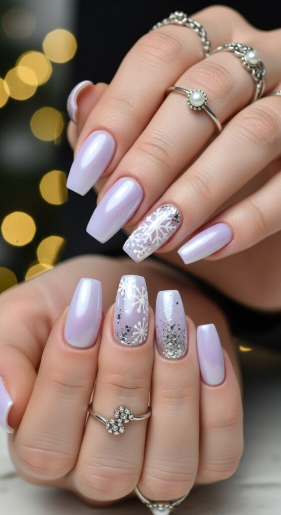 Who says Christmas colors have to be red and green? This pale, shimmery lilac is a cool-toned beauty that feels like a frosty morning.