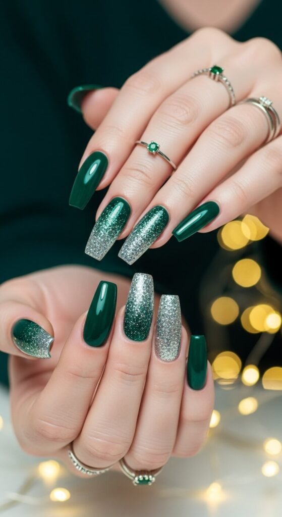 2. Emerald Green with a Glitter “Fade”