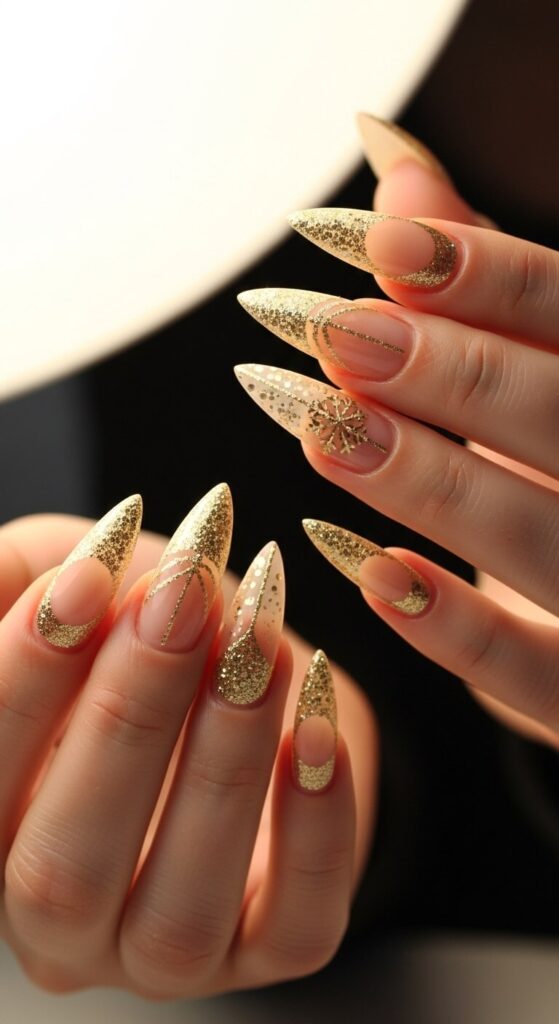 We already touched on glitter tips, but let’s elevate it. Instead of a solid glitter line, try a delicate glitter “freckle” along the tip. It’s like your nails are blushing with holiday spirit.
