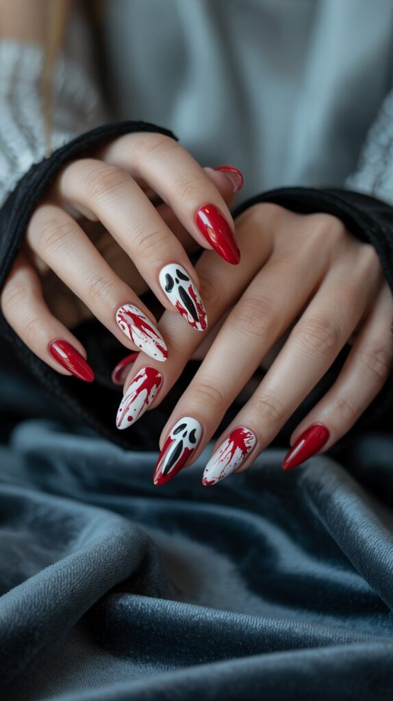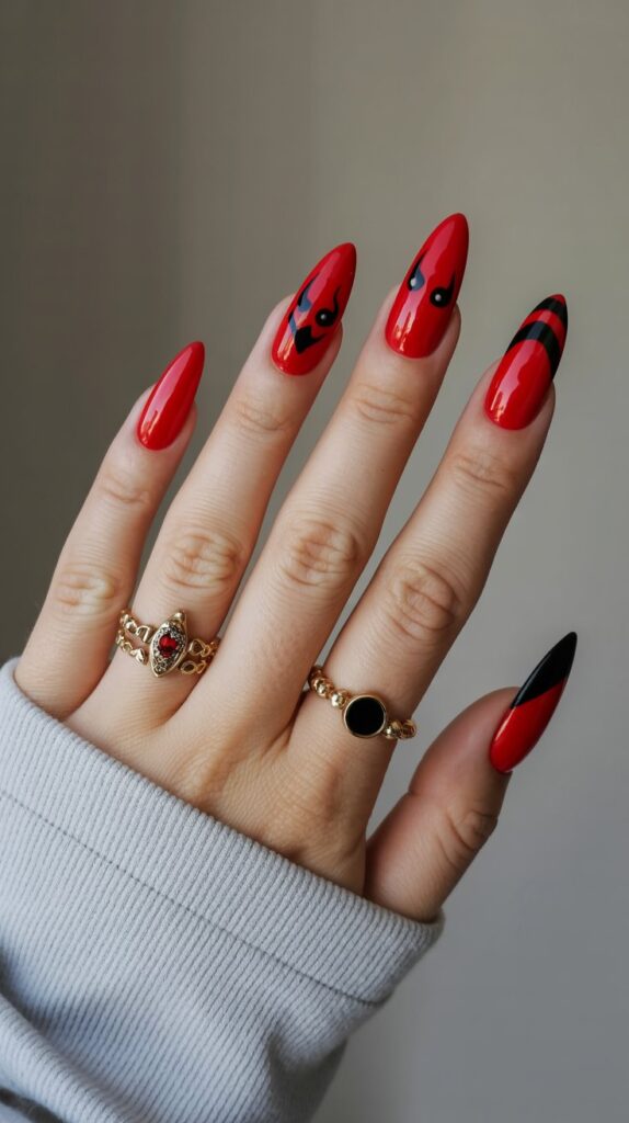 If you’re like me, you want your manicure to be in on the fun without screaming it from the rooftops. That’s where the magic of Red Halloween Nail Designs come in.