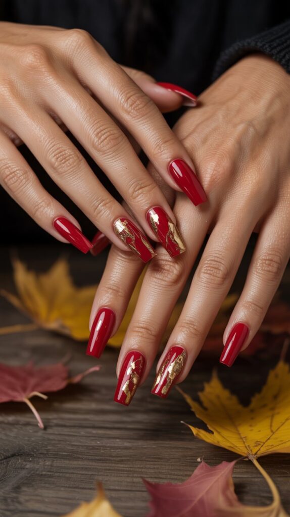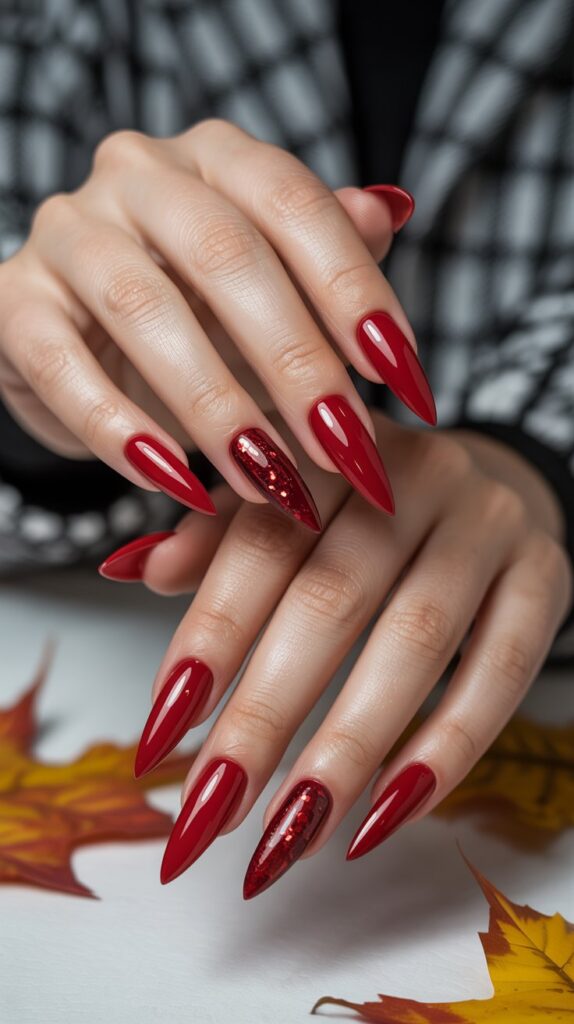 Channel your inner vampire queen with long, sharp stiletto nails. A deep, dark red matte finish looks exactly like red velvet cake—and honestly, isn’t that the mood for the entire Fall season?