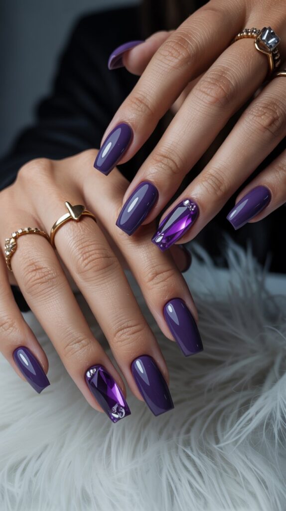 15. Simple Purple with a Single Accent Nail