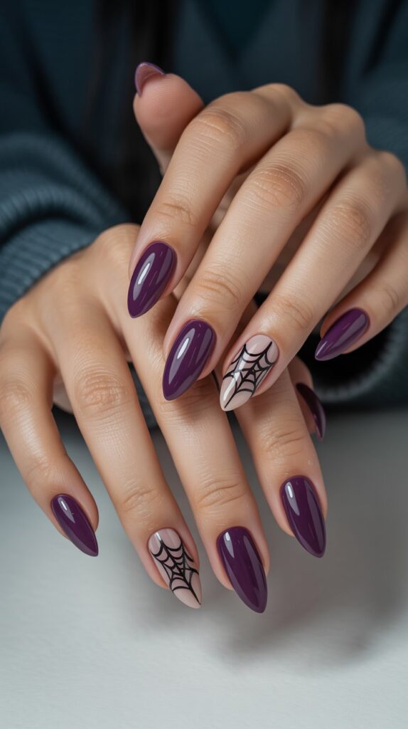 1. Deep Plum with Spiderweb Accents