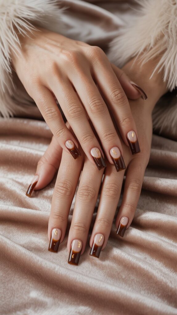 Imagine you dipped your tips in dark, rich coffee. This is a darker, edgier, and warmer version of the classic French tip. It’s subtle but makes a definite statement.