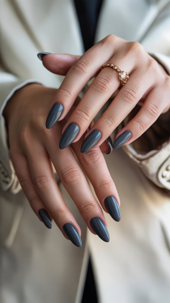 Mirror-like, liquid metal nails are having a huge moment. It’s a high-impact, futuristic look that somehow still feels right for fall when done in deep shades.