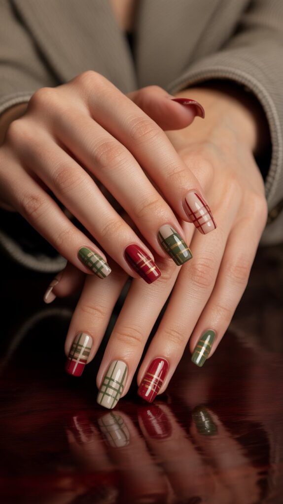 Channel your inner lumberjack with this classic print. It’s nostalgic, festive, and honestly just really fun. Who doesn’t want a flannel shirt on their nails?