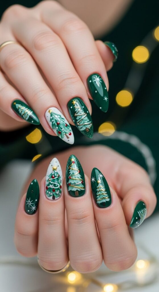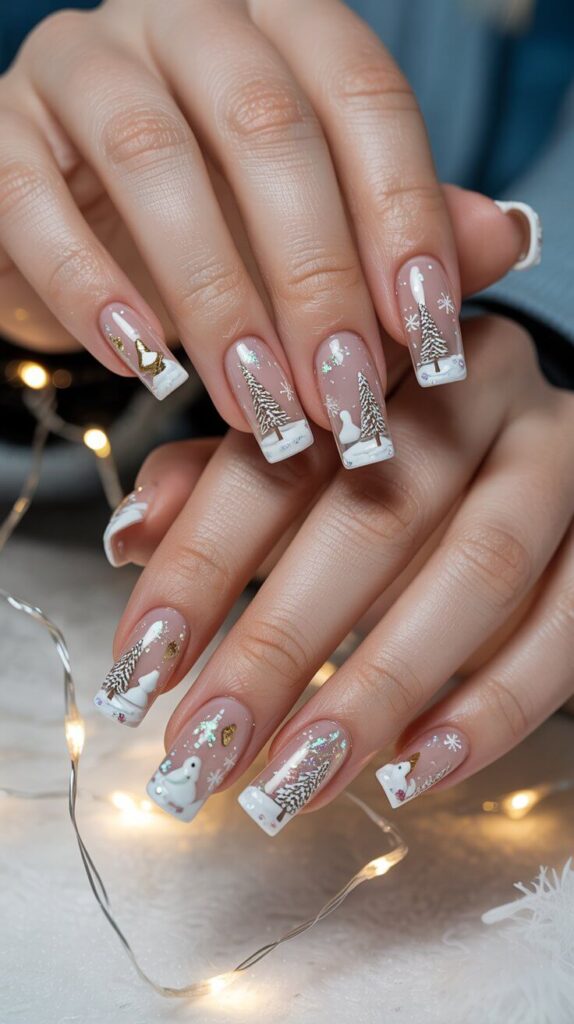 Tiny, minimalist Christmas trees are having a moment. This design is artsy, modern, and feels like a winter wonderland on your nails.