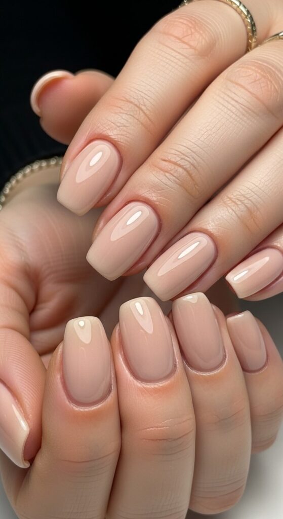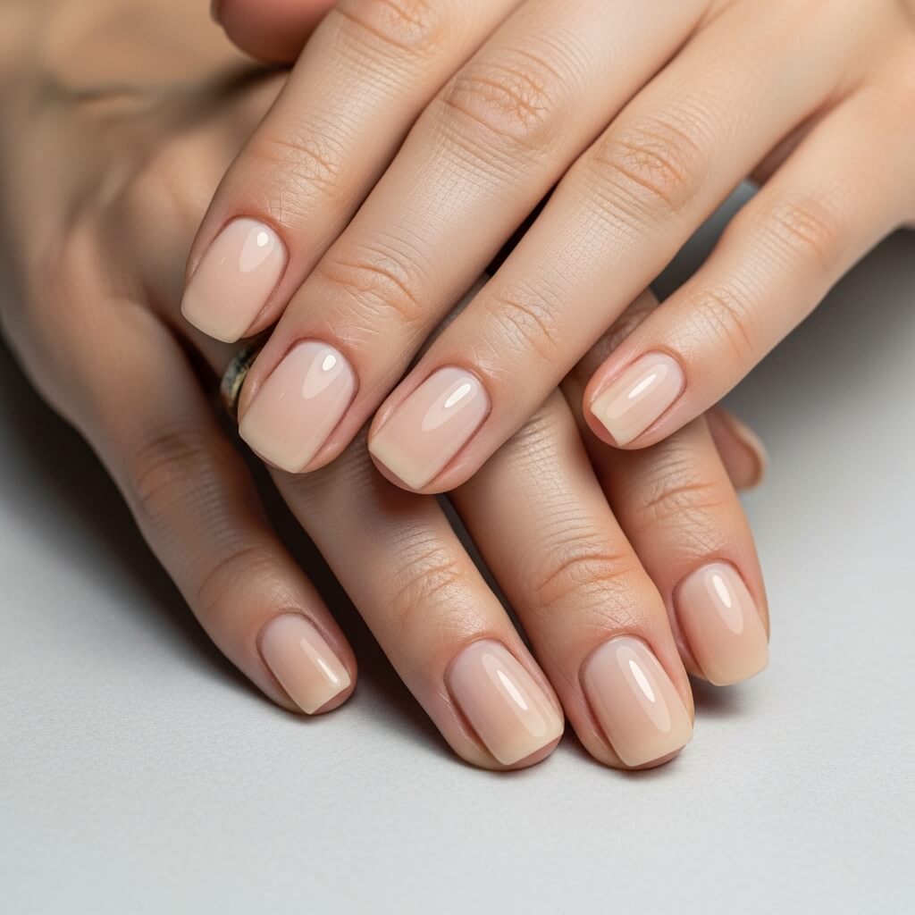 A sheer pink or clear gloss enhances your natural nails without looking “done.”