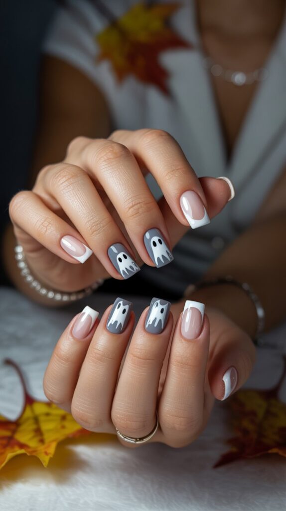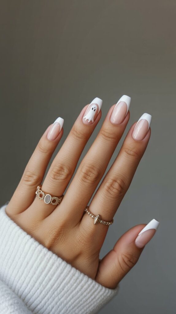 Is there anything cuter than a little ghost? This design takes the minimalist French manicure and gives it a playful Halloween twist.