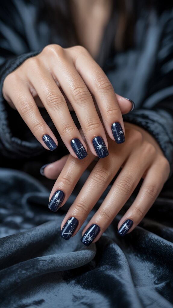 - Use a fine glitter polish or a speckling tool to create a scatter of stars.