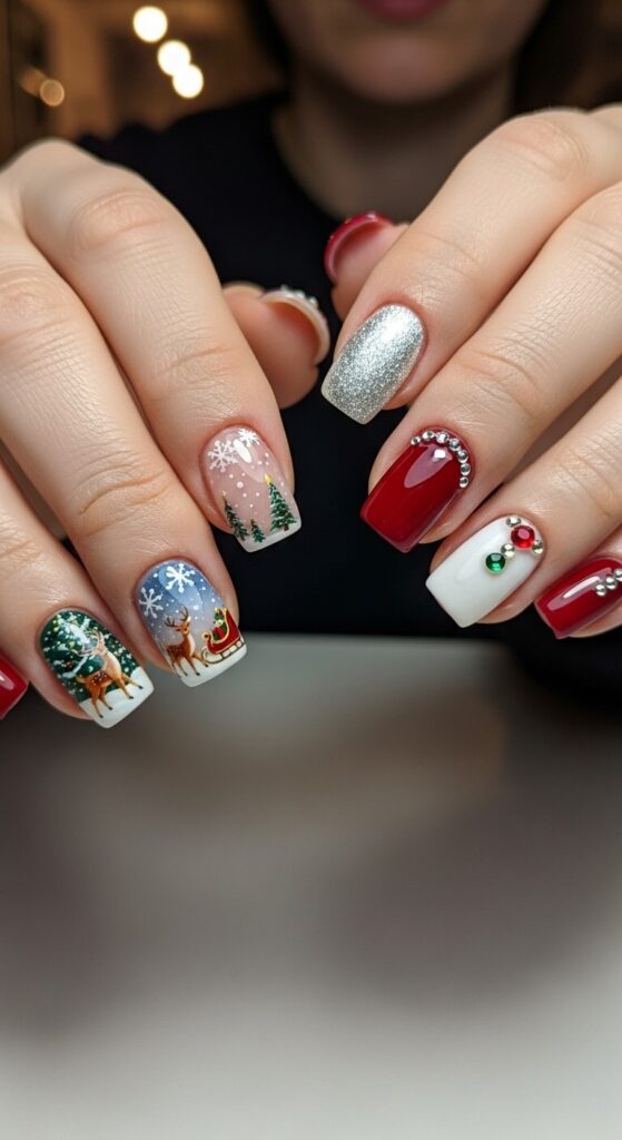 - Ask your nail tech for a stamping design—it’s the easiest way to get those perfect little snowflakes and reindeer.