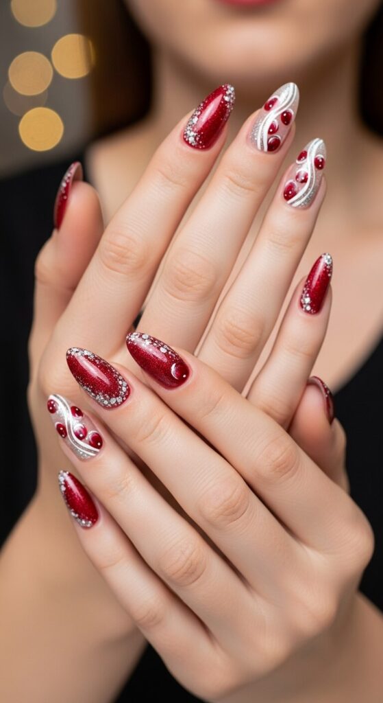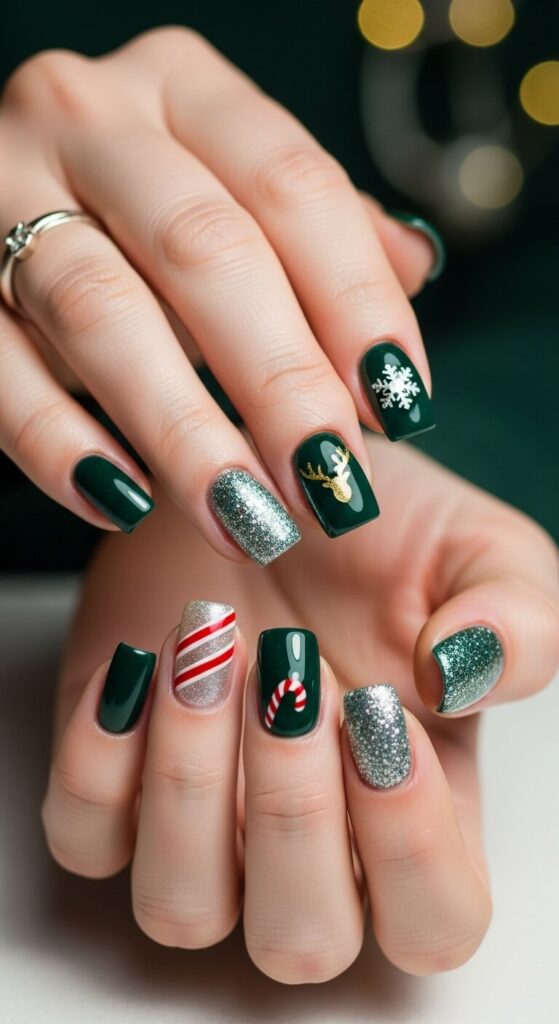 Sometimes, simplicity is the ultimate sophistication. A single coat of a rich, shimmering emerald green polish is all you need. It’s luxurious, deep, and captures the holiday spirit in one swipe.