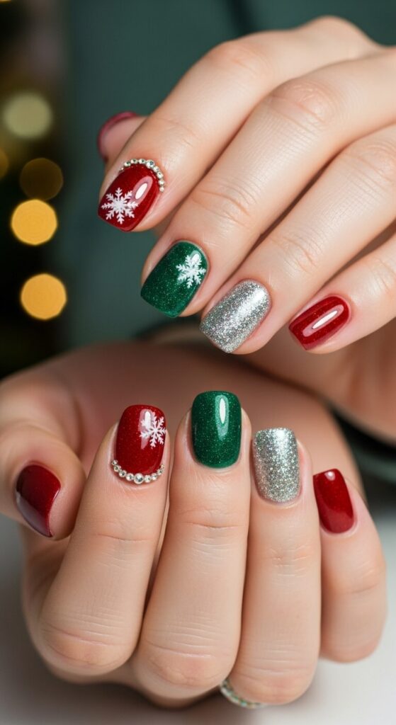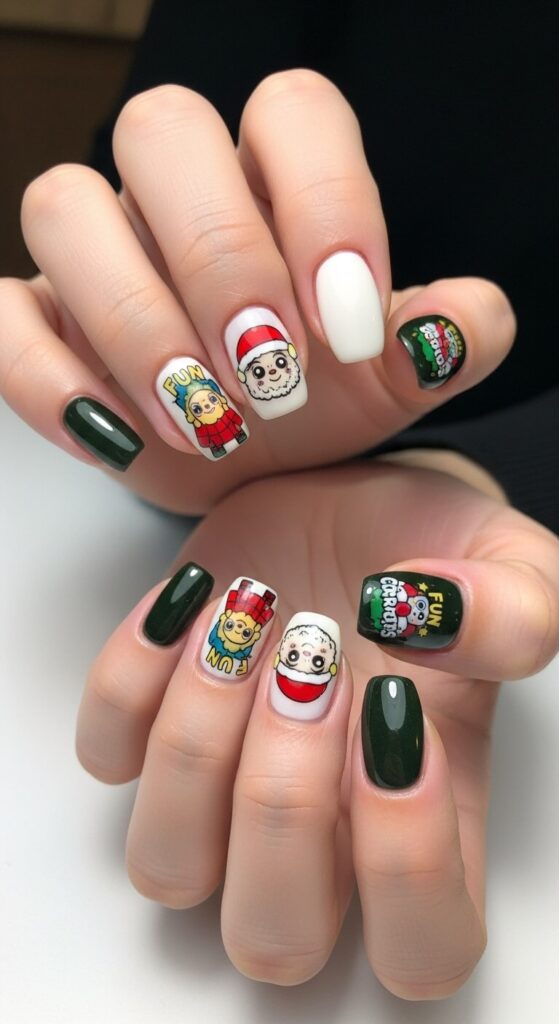 Who says short nails can’t have personality? Get a cute Santa, a cheerful snowman, or the Grinch himself painted on an accent nail. It’s an instant conversation starter.