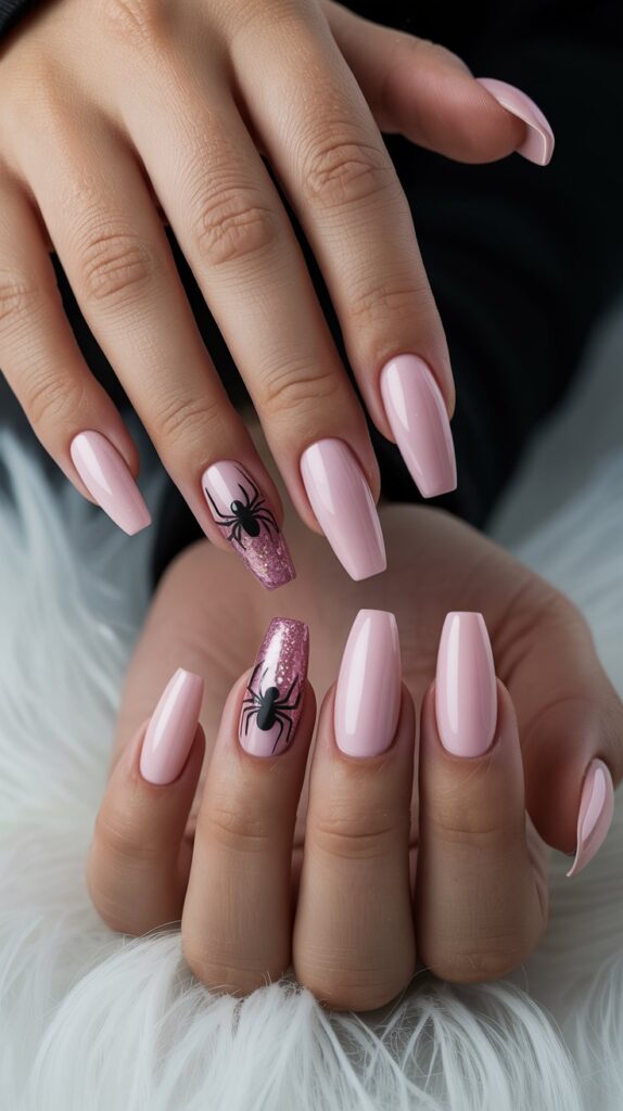 All that glitters isn’t gold—sometimes it’s pink and has eight legs. This design combines sparkle and spook in the most perfect way.